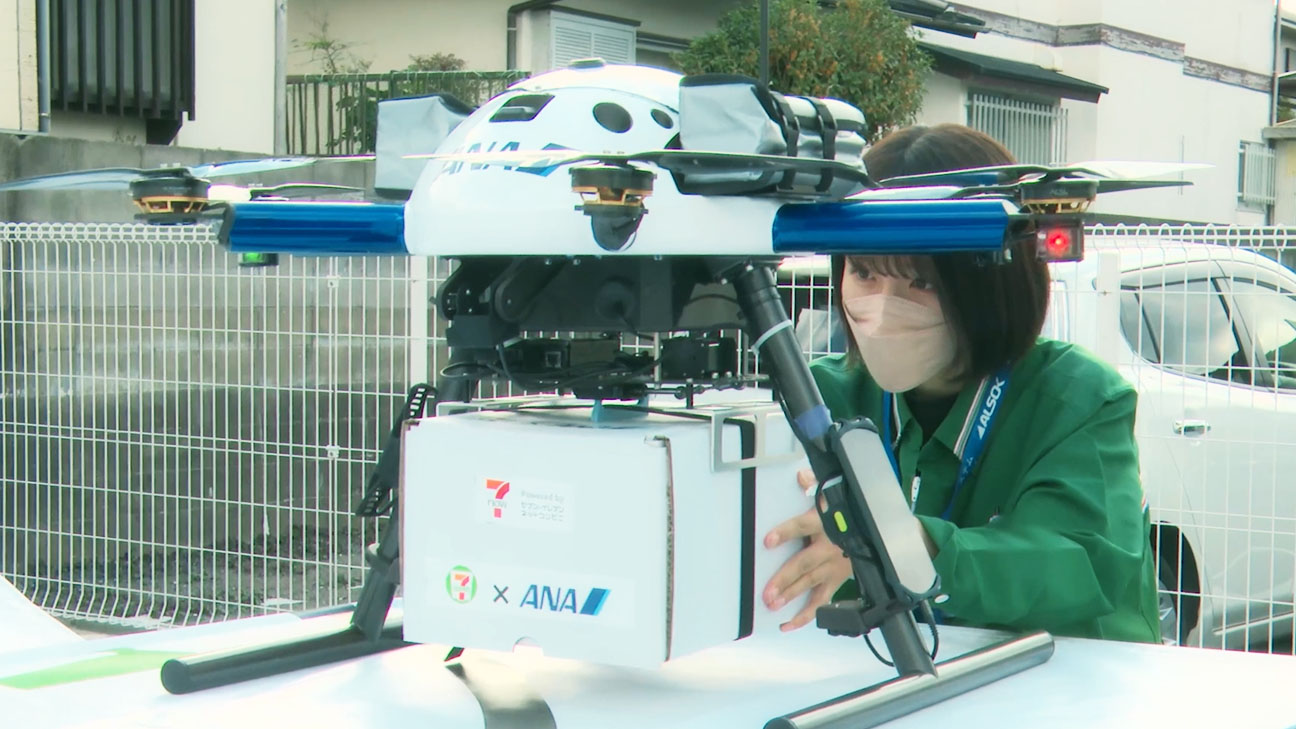Demonstration of a proof-of-concept experiment using drones to deliver 7NOW products
