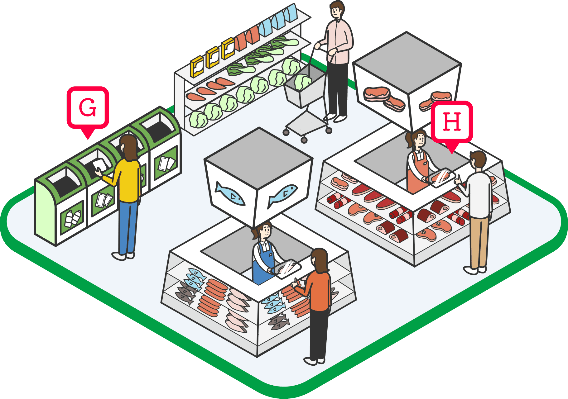 “てまえどり”は、消費者庁、農林水産省、環境省と共に進めている食品ロス削減の取り組みです。すぐに食べるものを手前からとっていただくようお客様にご協力いただくことで、期限切れによる食品廃棄の削減につなげています。