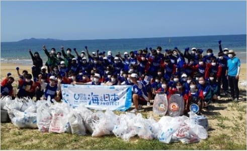 北海道から沖縄まで30都道府県で高校生がごみ拾いを競う『海と日本プロジェクト スポGOMI甲子園』各地の優勝チームは東京で開催される決勝大会へと進み、高校生ごみ拾いNo.1を決めるイベントです。2021年10月2日、北九州市有毛岩屋海岸で実施された福岡県大会ではセブン‐イレブンも協力。参加者の学生さんたちと交流しました。各チームでオリジナルごみ拾いグッツを持参したり、海岸沿いの茂みから大きなごみを拾ったりと、たくさんのごみを回収し、熱心に分別も実施。スポーツとごみ拾いを融合した楽しく学びになるイベントでした。