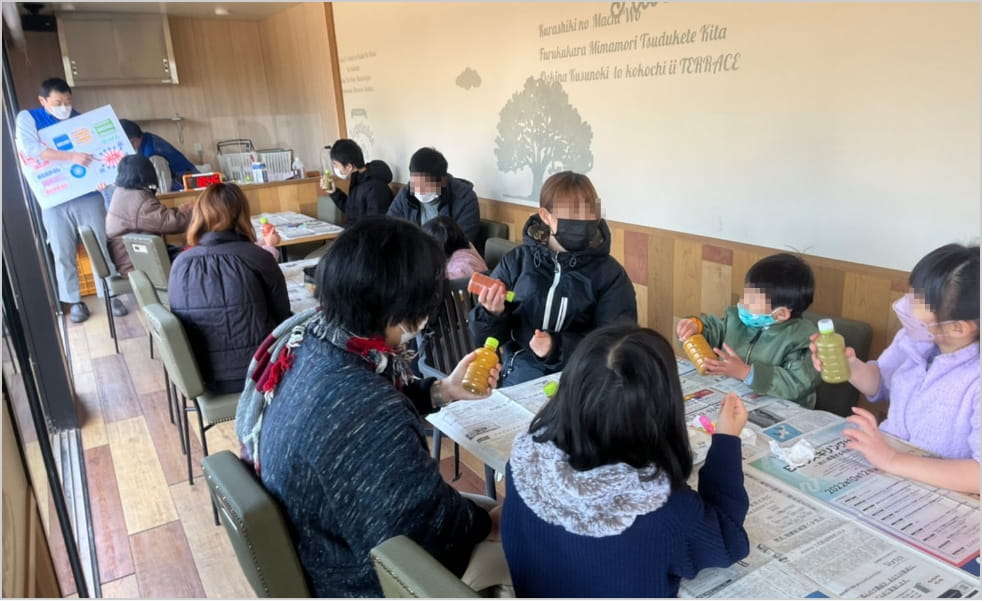 イベントでは、屋外で台所や洗濯で使う洗剤で特大シャボン玉や触れるシャボン玉などのショーや体験イベントを実施し、トレーラーハウスでは料理で使った油を石鹸として再利用することを学ぶワークショップを開催しました。