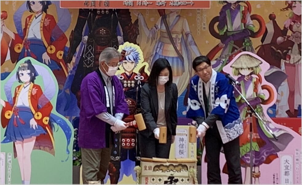 令和4年のアリオ上田でのお田植祭がきっかけで、山家神社・稲倉の棚田・アリオ上田のご縁がつながり、本年より稲倉の棚田保全委員会にも参集頂きました。その他、長野県上田地域振興局 柳沢由里局長、稲倉の棚田保全委員会久保田良和委員長、山家神社総代会、山家雅楽会、ひもろぎ会、真田地域の小学生、殺陣サークル眞(たてサークルしん)など多くの方々に奉仕いただきました。