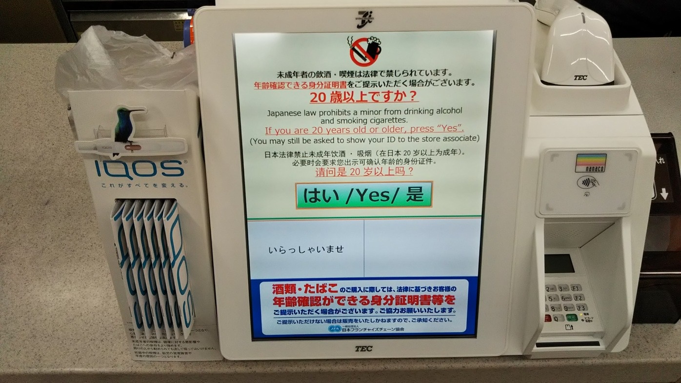 セブン‐イレブン・ジャパンでは、酒類・たばこを取扱う店舗のレジの近くに「年齢確認実施中」のポスターを掲出し、20歳未満者および20歳代と思われるお客様には、身分証明書による年齢確認を実施しています。また、一般社団法人日本フランチャイズチェーン協会と連携して、年に3回、酒類・たばこ販売時の年齢確認の強化月間を設け、加盟店従業員への教育・啓発を行い、20歳未満者へ販売しないように努めています。